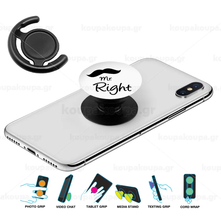 Mr right Mustache, Phone Holders Stand Black Hand-held Mobile Phone Holder