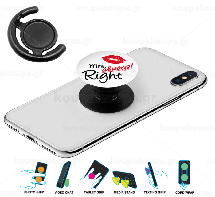 Mrs always right kiss, Phone Holders Stand Black Hand-held Mobile Phone Holder