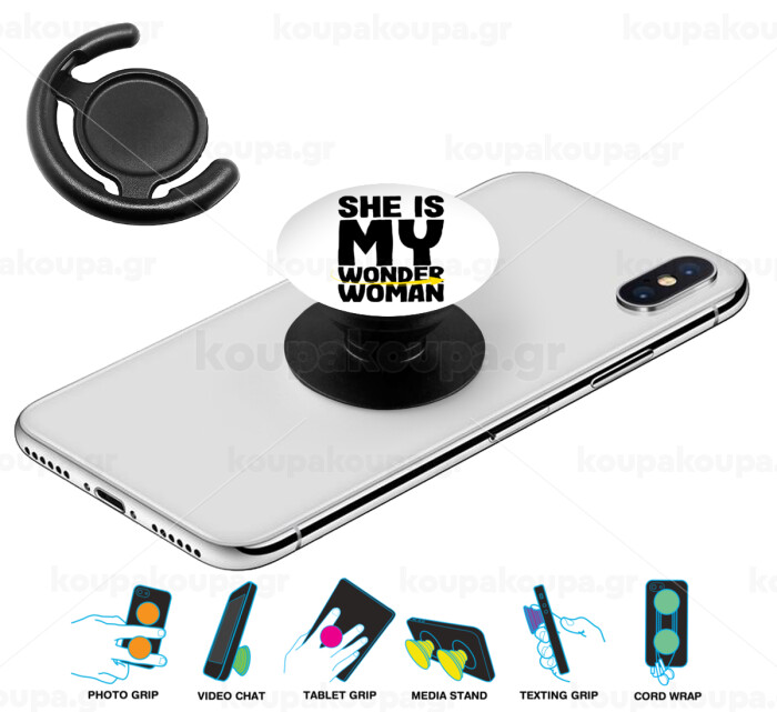 She is my wonder woman, Phone Holders Stand Black Hand-held Mobile Phone Holder