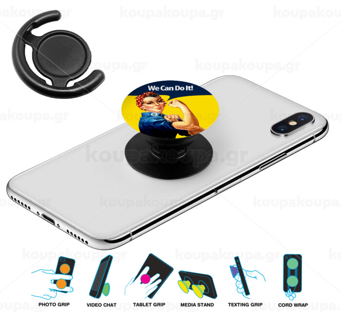 Rosie we can do it!, Phone Holders Stand Black Hand-held Mobile Phone Holder