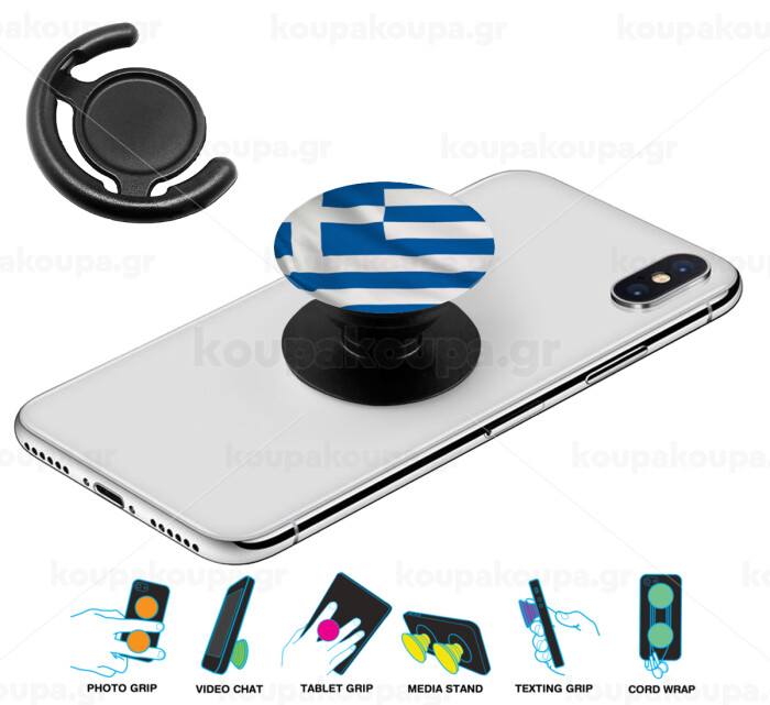 GREEK Flag, Phone Holders Stand Black Hand-held Mobile Phone Holder