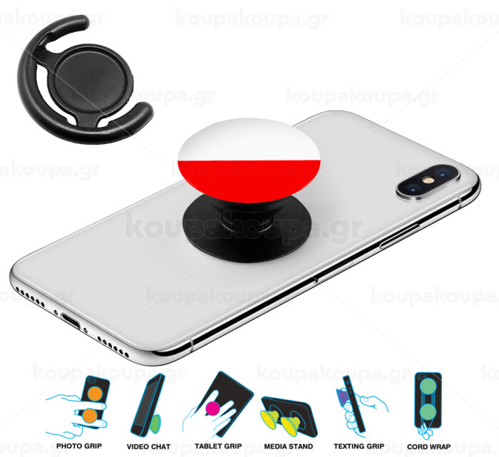 Poland flag, Phone Holders Stand Black Hand-held Mobile Phone Holder