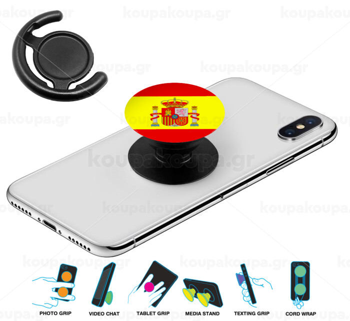 Spain flag, Phone Holders Stand Black Hand-held Mobile Phone Holder