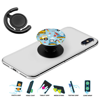 Hand drawing building truck, Phone Holders Stand Black Hand-held Mobile Phone Holder