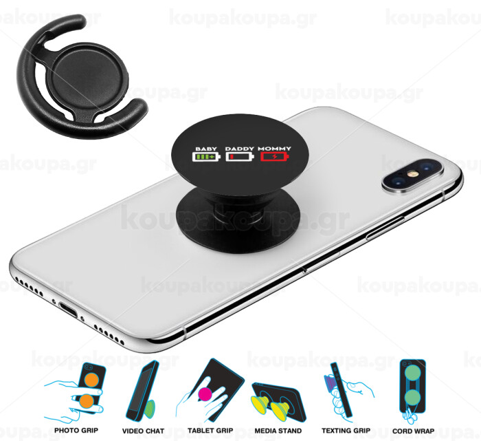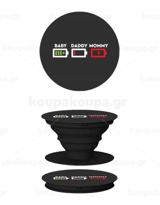 BABY, MOMMY, DADDY Low battery, Phone Holders Stand Black Hand-held Mobile Phone Holder