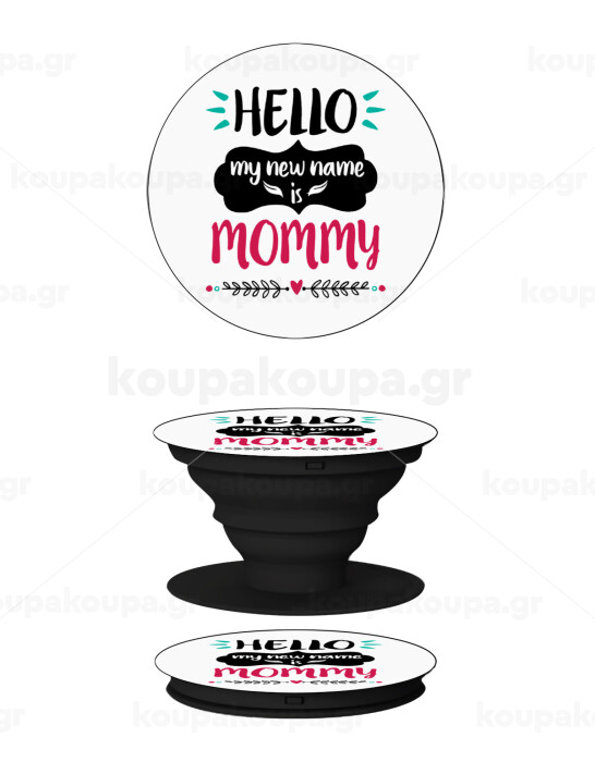 Hello, my new name is Mommy, Phone Holders Stand Black Hand-held Mobile Phone Holder