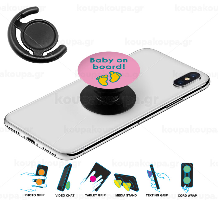 Baby on Board πατουσα Κορίτσι, Phone Holders Stand Black Hand-held Mobile Phone Holder
