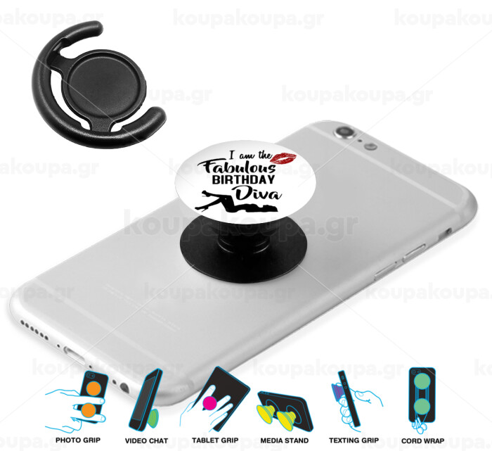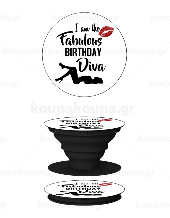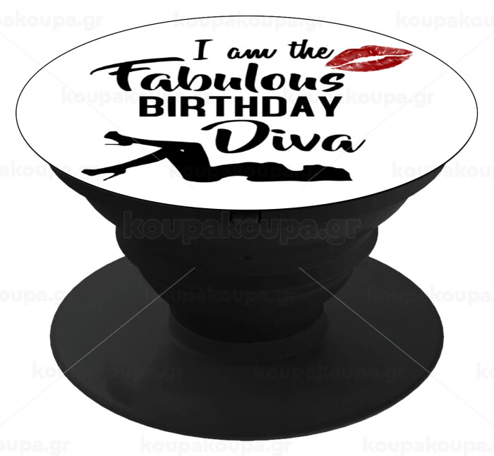 I am the fabulous Birthday Diva, Phone Holders Stand Black Hand-held Mobile Phone Holder