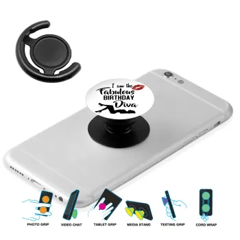 I am the fabulous Birthday Diva, Phone Holders Stand Black Hand-held Mobile Phone Holder
