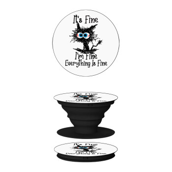 Cat, It's Fine I'm Fine Everything Is Fine, Phone Holders Stand Black Hand-held Mobile Phone Holder