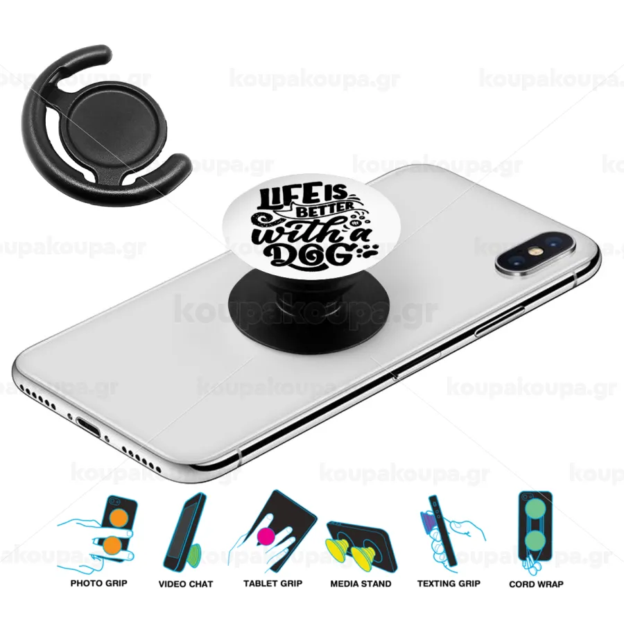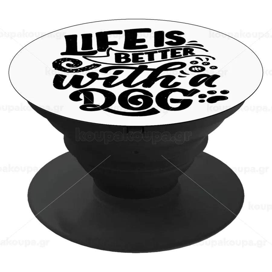 Life is better with a DOG, Phone Holders Stand Black Hand-held Mobile Phone Holder