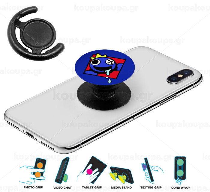 Blue, Rainbow friends, Phone Holders Stand Black Hand-held Mobile Phone Holder