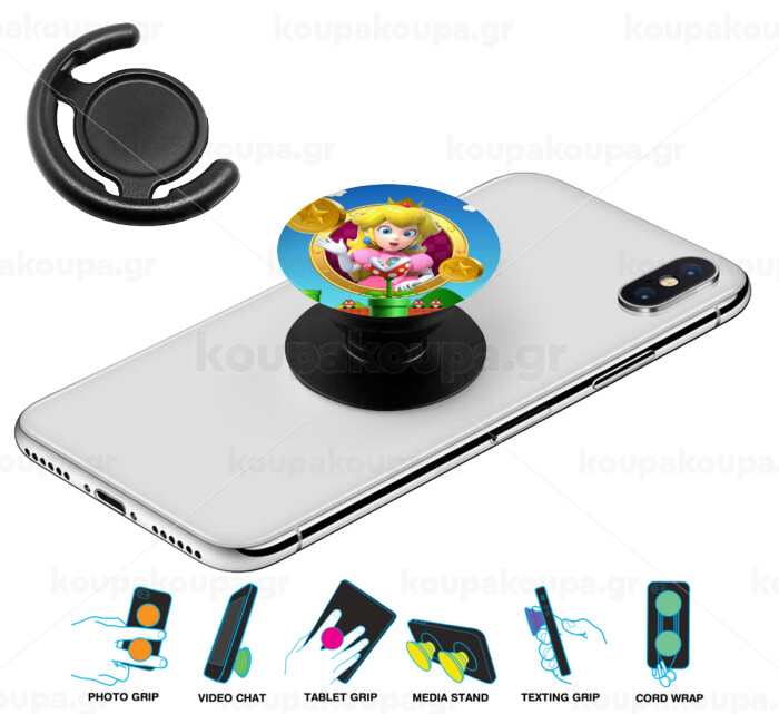 Princess Peach Toadstool, Phone Holders Stand Black Hand-held Mobile Phone Holder