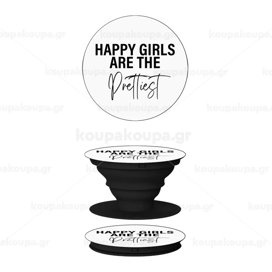 Happy girls are the prettiest, Phone Holders Stand Black Hand-held Mobile Phone Holder