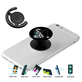 Little astronaut fishing, Phone Holders Stand Black Hand-held Mobile Phone Holder