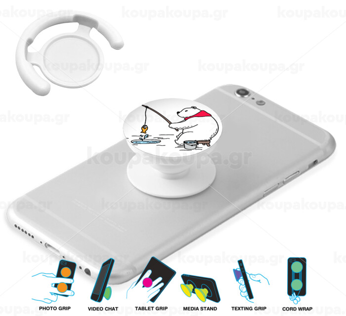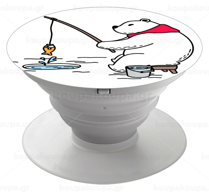 Bear fishing, Phone Holders Stand White Hand-held Mobile Phone Holder