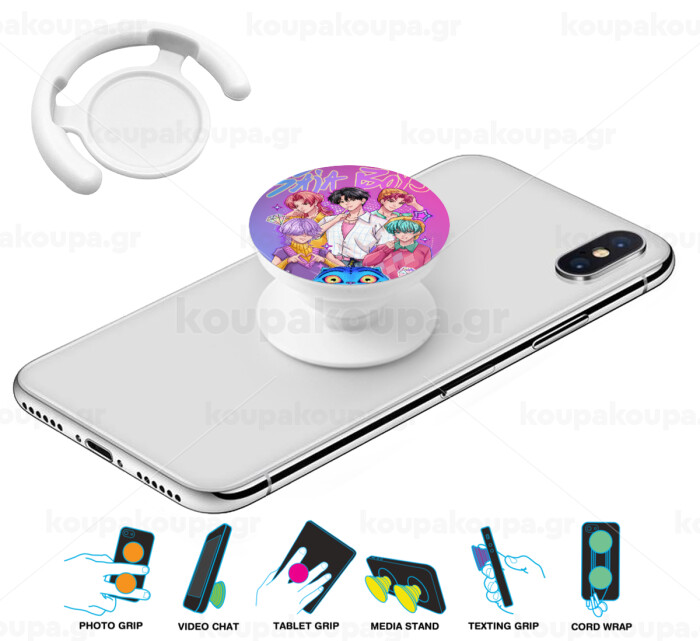 Huntrix Saja Boys, Phone Holders Stand White Hand-held Mobile Phone Holder