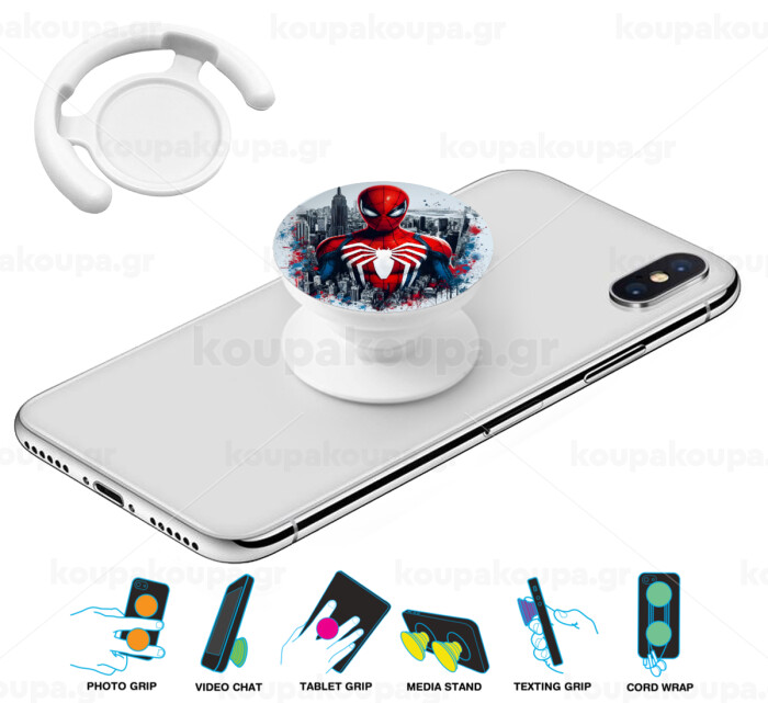 Spiderman City, Phone Holders Stand White Hand-held Mobile Phone Holder