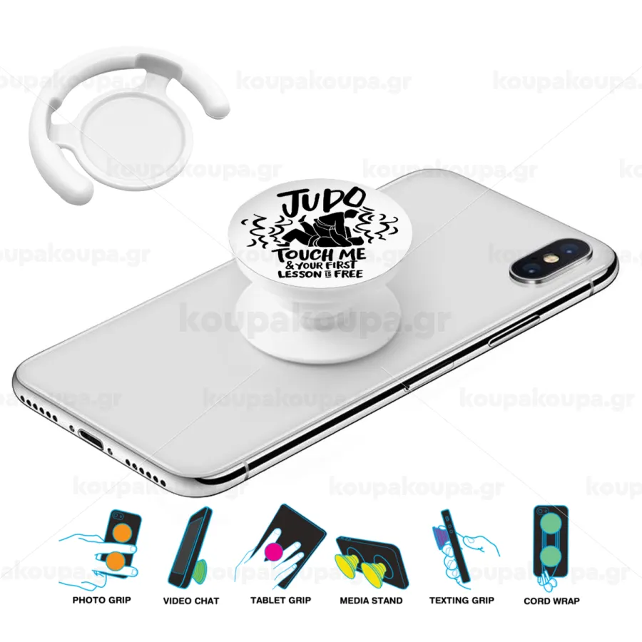 Judo Touch Me And Your First Lesson Is Free, Phone Holders Stand White Hand-held Mobile Phone Holder