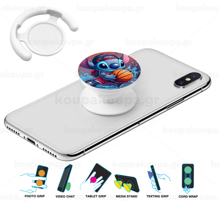 Stitch Basketball, Phone Holders Stand White Hand-held Mobile Phone Holder