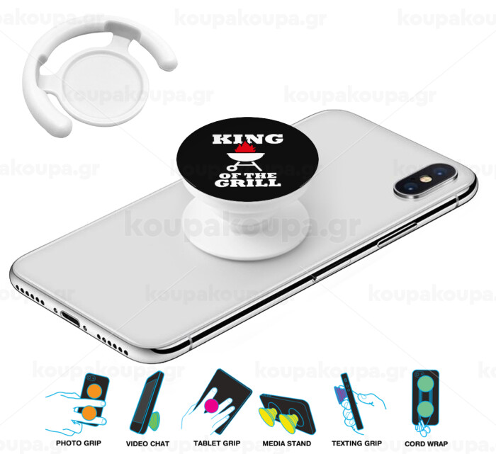 KING of the Grill, Phone Holders Stand White Hand-held Mobile Phone Holder
