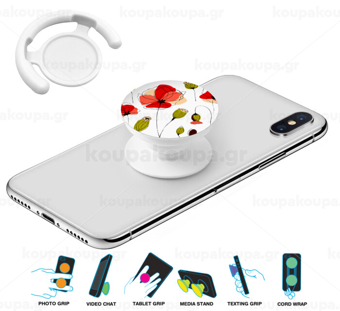 Red poppy flowers papaver, Phone Holders Stand White Hand-held Mobile Phone Holder