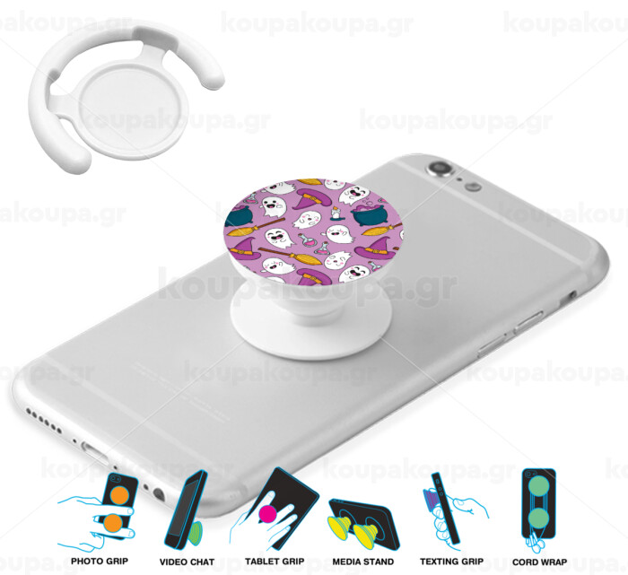Happy Halloween pink, Phone Holders Stand White Hand-held Mobile Phone Holder