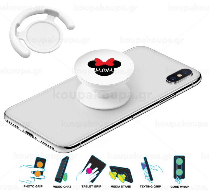 mini mom, Phone Holders Stand White Hand-held Mobile Phone Holder