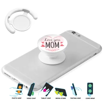 Mother's day I Love you Mom heart, Phone Holders Stand White Hand-held Mobile Phone Holder