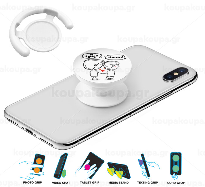 Τι έχεις? Τίποτα!, Phone Holders Stand White Hand-held Mobile Phone Holder