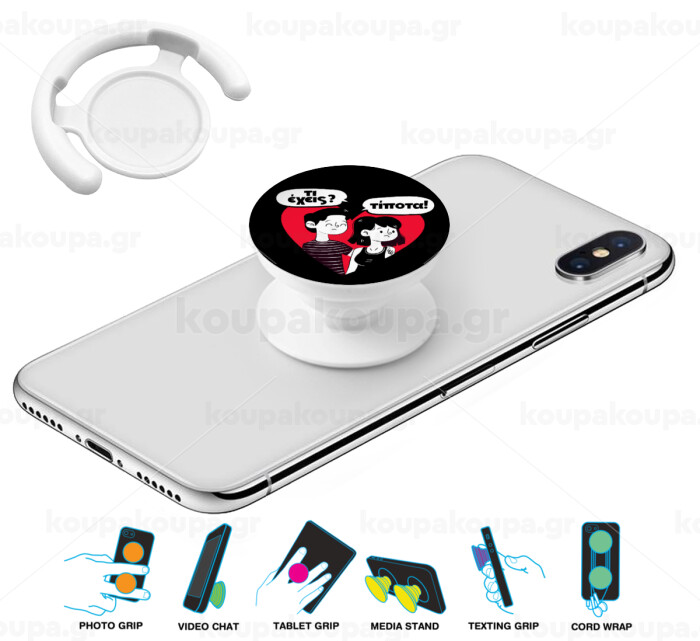 Τι έχεις? Τίποτα!, Phone Holders Stand White Hand-held Mobile Phone Holder