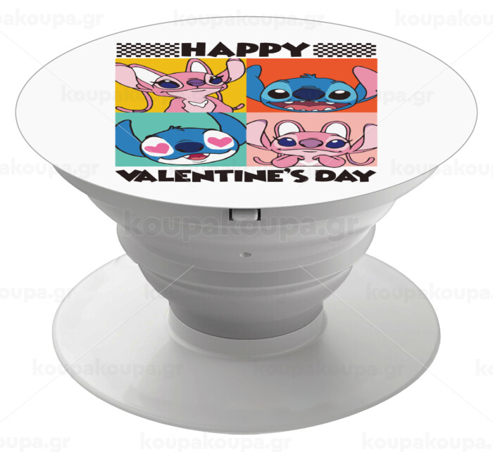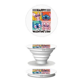 Lilo & Stitch Happy valentines day, Phone Holders Stand White Hand-held Mobile Phone Holder