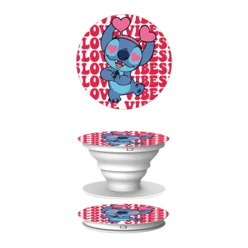 Lilo & Stitch Love vibes, Phone Holders Stand White Hand-held Mobile Phone Holder