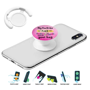 My favorite place is inside your HUG, Phone Holders Stand White Hand-held Mobile Phone Holder
