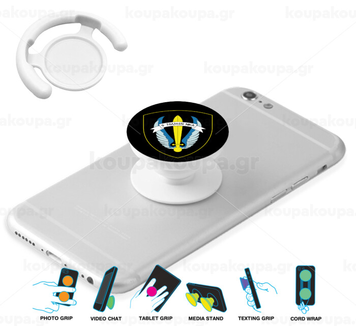 Έμβλημα Μονάδων Καταδρομών Ο Τολμων Νικα - Λοκ, Phone Holders Stand White Hand-held Mobile Phone Holder