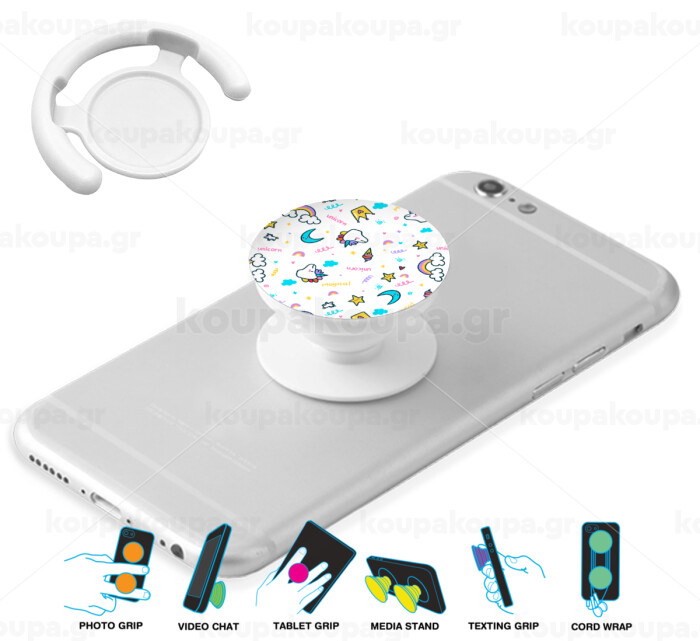 Unicorn pattern white, Phone Holders Stand White Hand-held Mobile Phone Holder