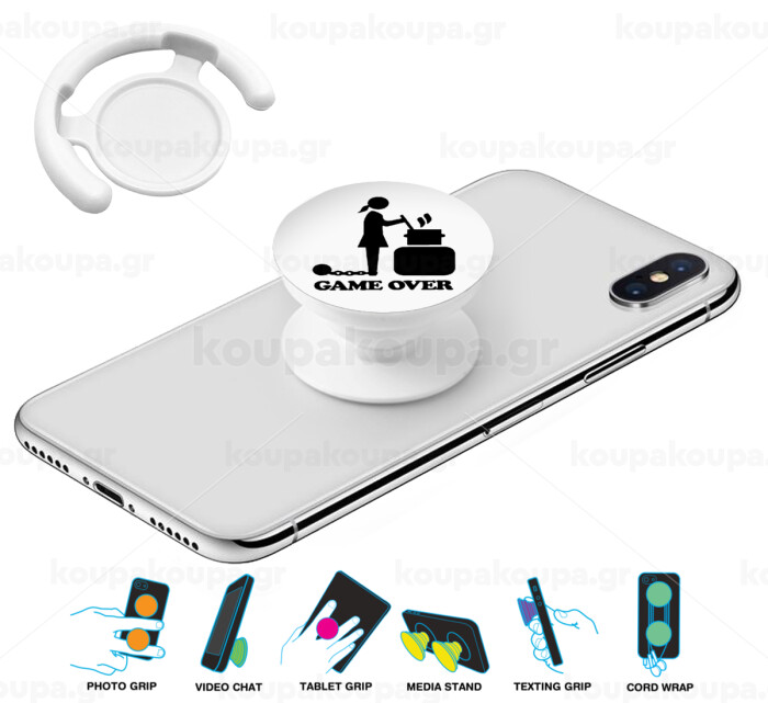 Woman Game Over, Phone Holders Stand White Hand-held Mobile Phone Holder