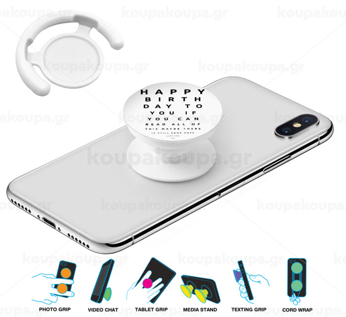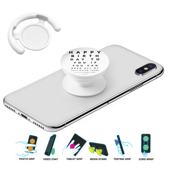EYE tester happy birthday., Phone Holders Stand White Hand-held Mobile Phone Holder
