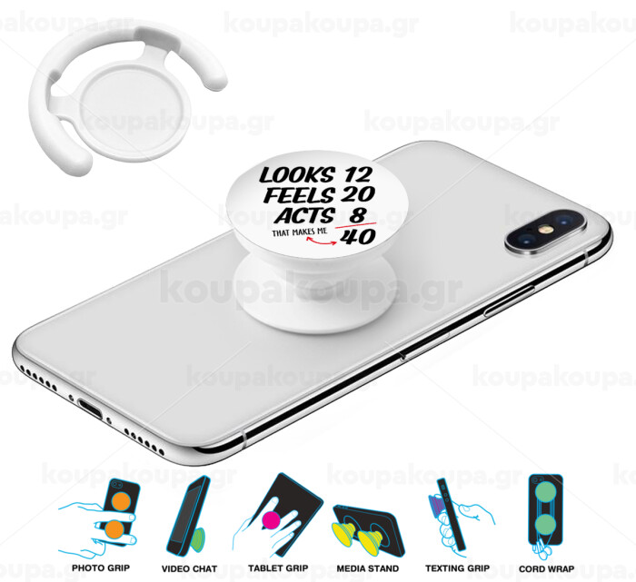 Looks, feels, acts LIKE your AGE, Phone Holders Stand White Hand-held Mobile Phone Holder