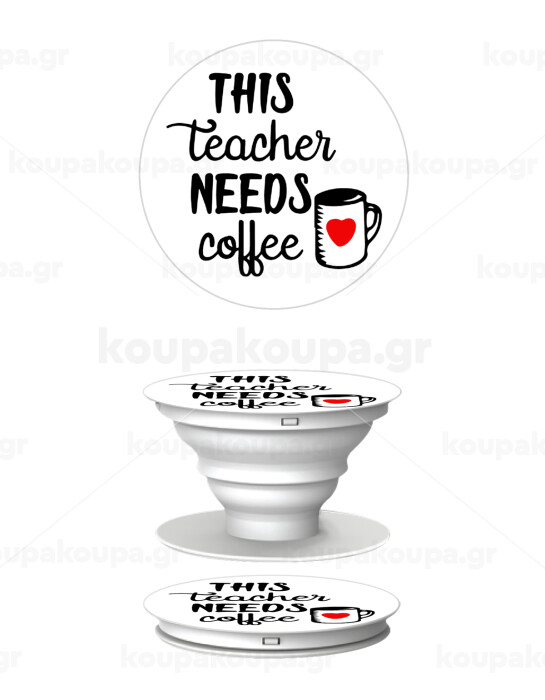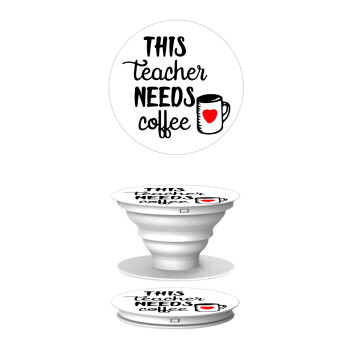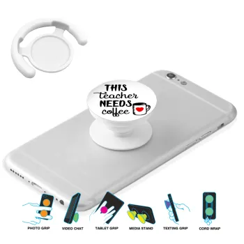 Τhis teacher needs coffee, Phone Holders Stand White Hand-held Mobile Phone Holder