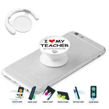 i love my teacher but no the homework, Phone Holders Stand White Hand-held Mobile Phone Holder