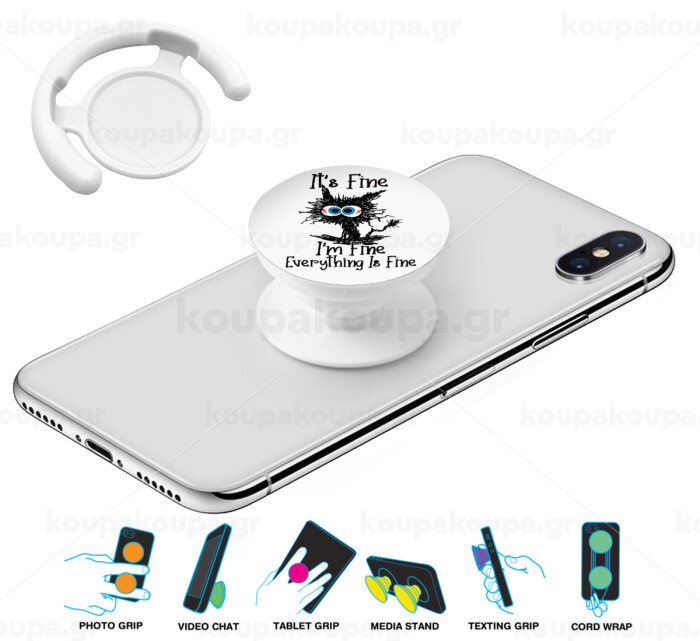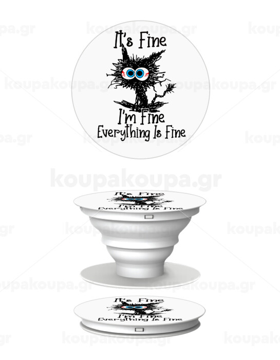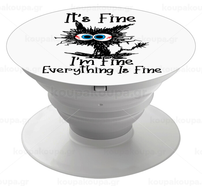 Cat, It's Fine I'm Fine Everything Is Fine, Phone Holders Stand White Hand-held Mobile Phone Holder
