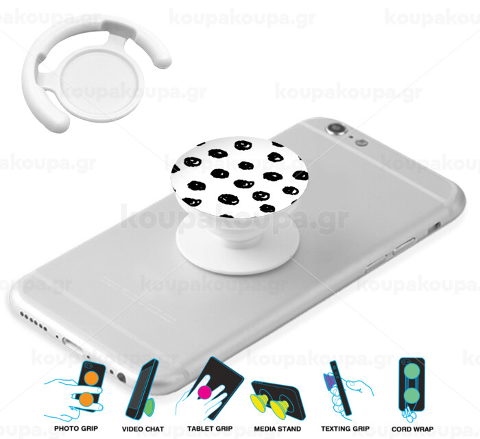 Doodle Dots, Phone Holders Stand White Hand-held Mobile Phone Holder