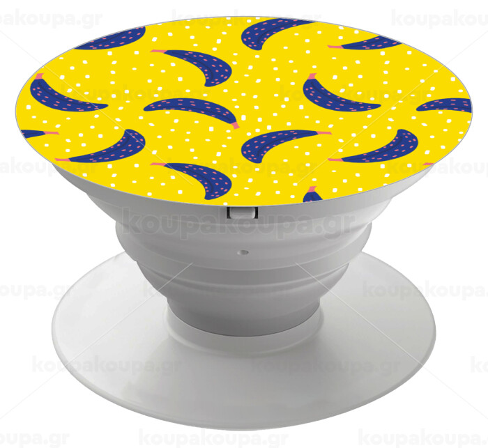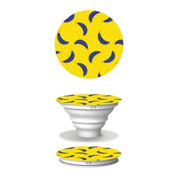 Yellow seamless with blue bananas, Phone Holders Stand White Hand-held Mobile Phone Holder