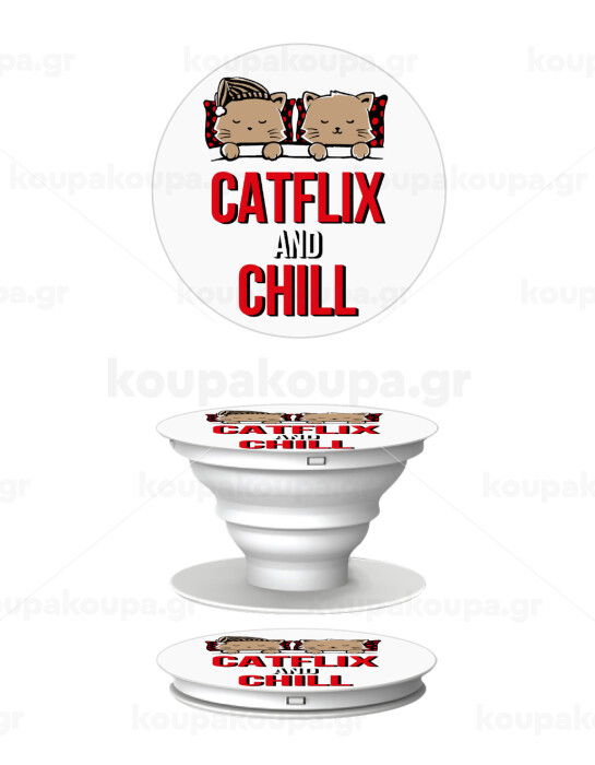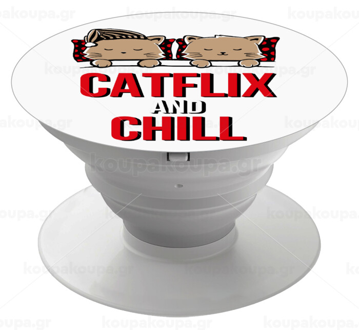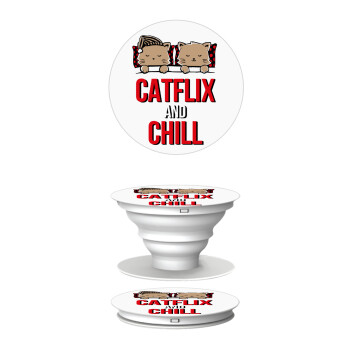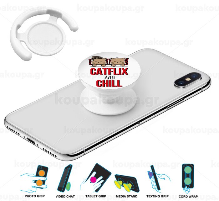 Catflix and Chill, Phone Holders Stand White Hand-held Mobile Phone Holder