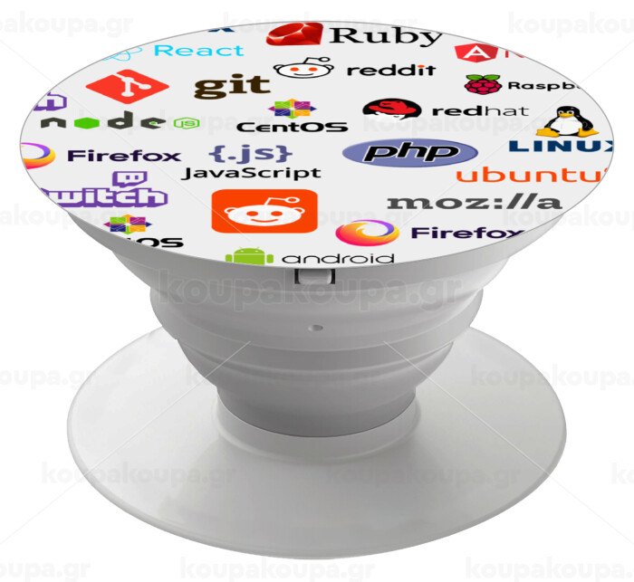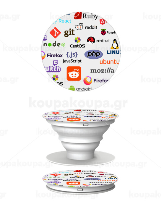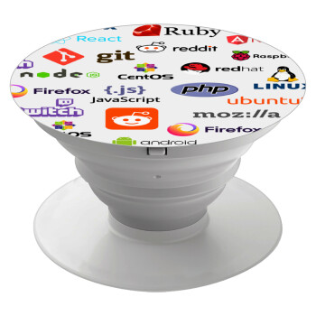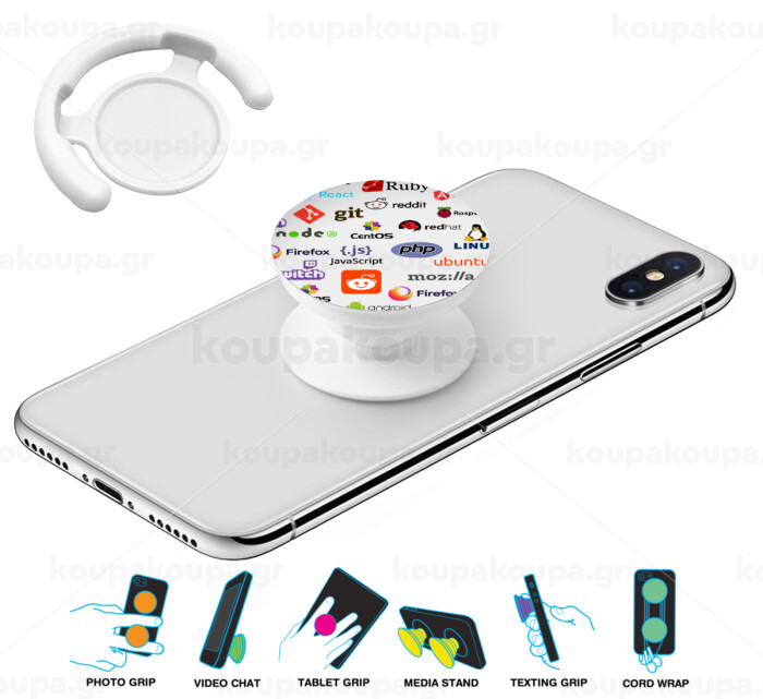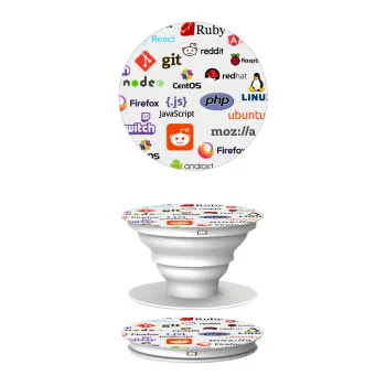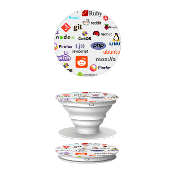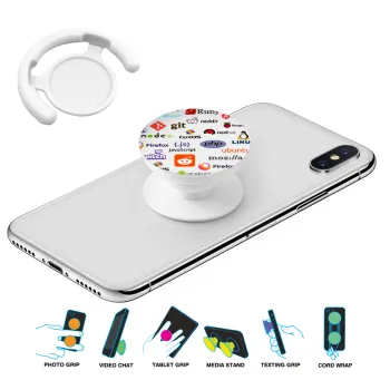 Tech logos, Phone Holders Stand White Hand-held Mobile Phone Holder