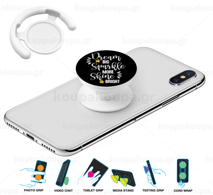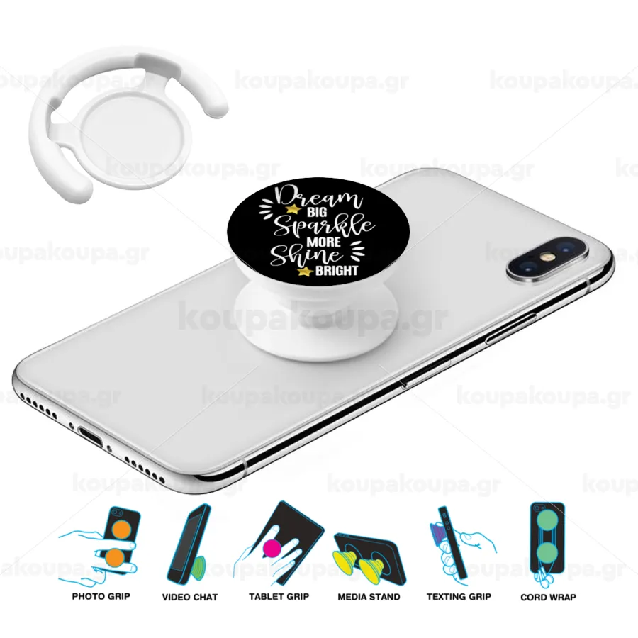 Dream big, Sparkle more, Shine bright, Phone Holders Stand White Hand-held Mobile Phone Holder