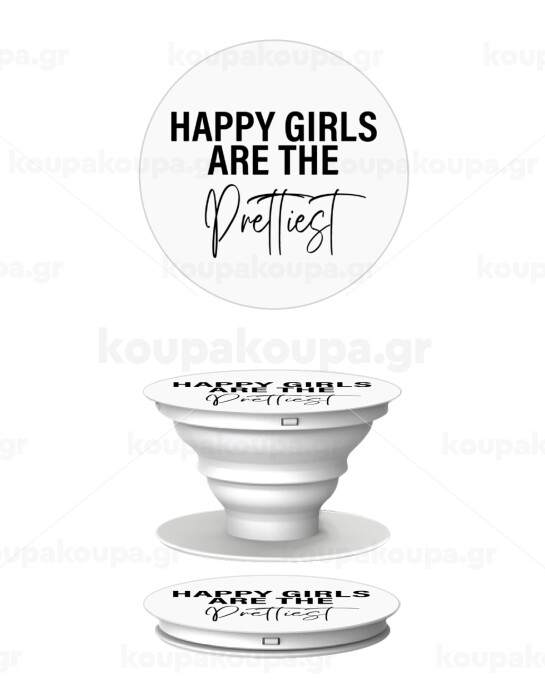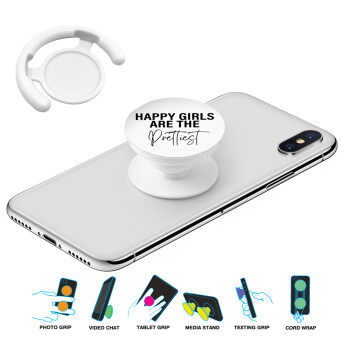 Happy girls are the prettiest, Phone Holders Stand White Hand-held Mobile Phone Holder
