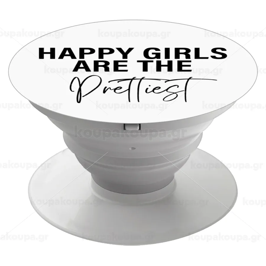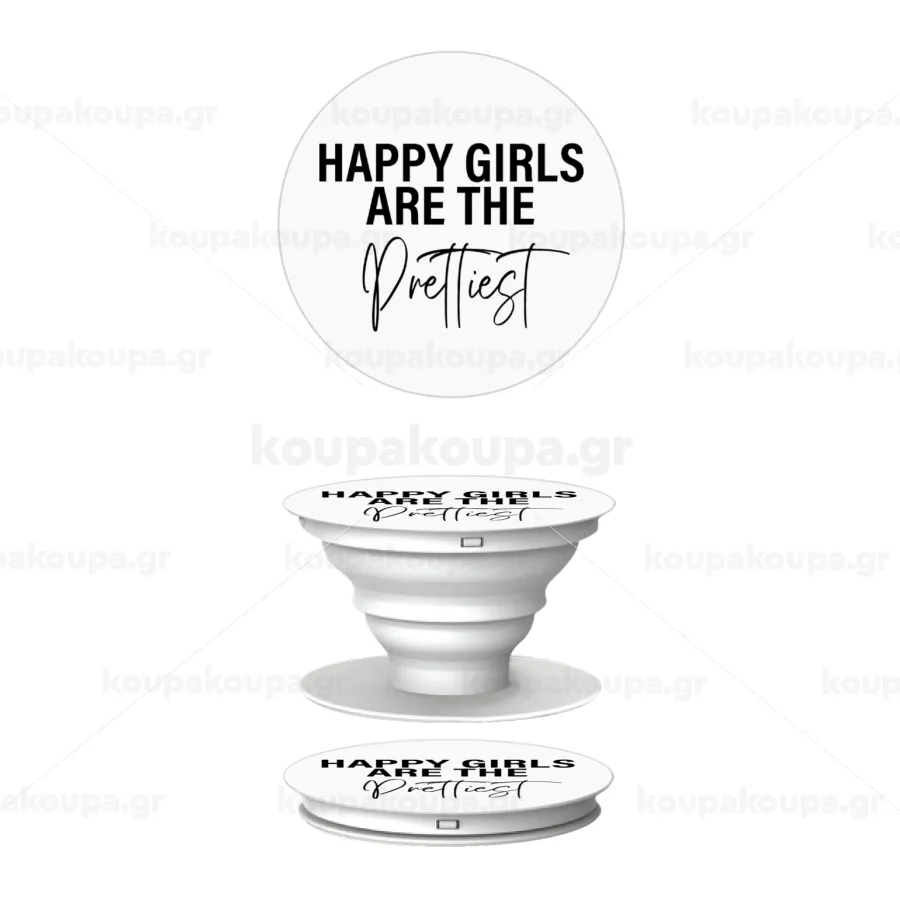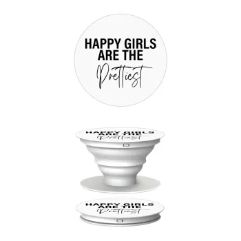 Happy girls are the prettiest, Phone Holders Stand White Hand-held Mobile Phone Holder