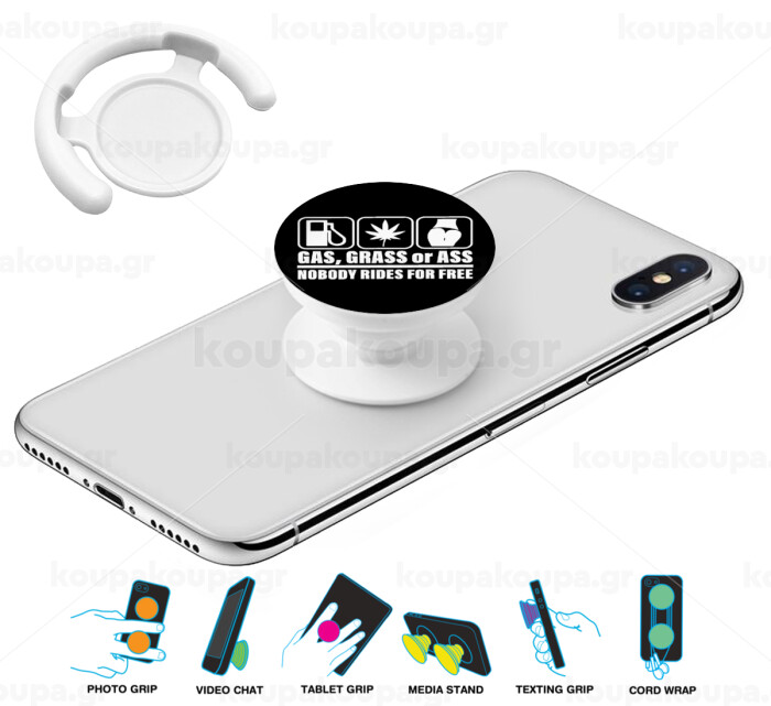 Gas, Grass or Ass, Phone Holders Stand White Hand-held Mobile Phone Holder